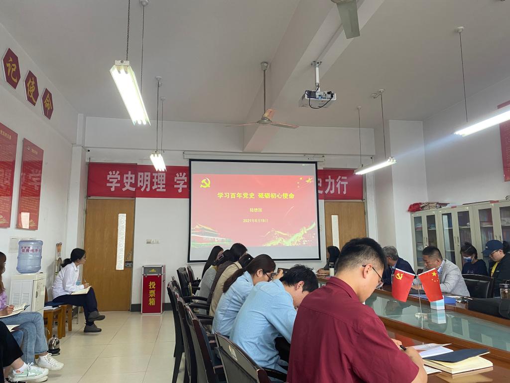 党总支书记陆德国以《学习百年党史 砥砺初心使命》为题,以马克思主义在中国的传播为主线,从党史的发展脉络、中国共产党发展历程等方面进行了讲述,从新的觉醒、新的理想和信念、新的道路选择、新的社会制度诞生、伟大的历史性转折、进入新时代等六个方面对中国共产党走过曲折艰辛、波澜壮阔的100年光辉历程作了详尽的阐述。教育党员要在学党史中坚定理想信念,在感悟思想中提升理论素养,在干实事中厚植为民情怀,在开新局中勇于担当作为。
