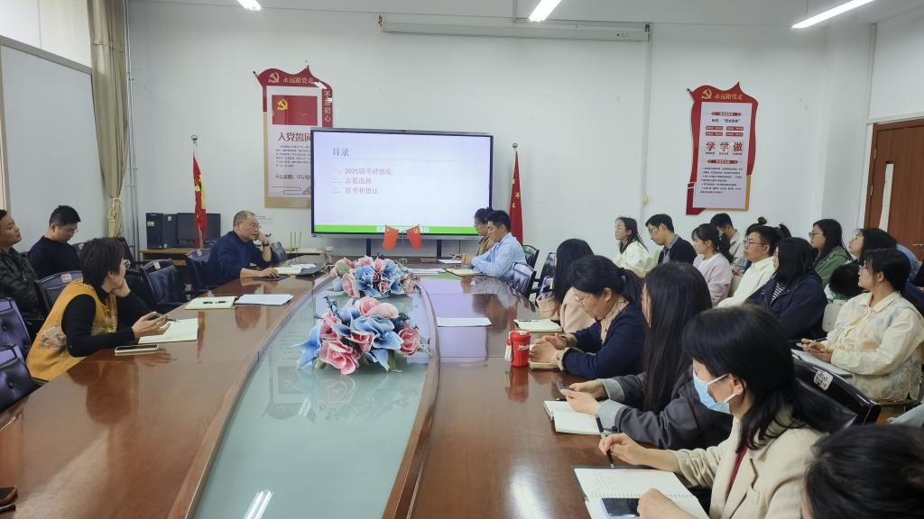 李中军对公司2025届考研情况进行了全面剖析。他指出,当前考研竞争日益激烈,员工个体存在差异,公司需以党建为引领,充分发挥党员教师的先锋模范作用,深入调研员工需求,建立“一人一档”考研跟踪机制,针对员工薄弱环节精准施策,切实提升员工的应试能力与综合素质。随后围绕“志愿选择”这一关键环节,李中军详细讲解了查询及掌握录取难度的具体步骤。他强调,要运用好中国研究生招生信息网与招生院校研究生官网,通过查询院校招生简章、复试分数线、一志愿录取名单、调剂方案等文件信息,进行数据比对判定录取难度。通过这一过程,为员工提供全面、精准的信息参考,引导员工结合自身专业兴趣和职业规划,理性评估自身实力,避免盲目跟风填报,确保员工志愿选择既契合个人发展愿景,又提高考研上岸成功率,真正将“以生为本”的理念落到实处。