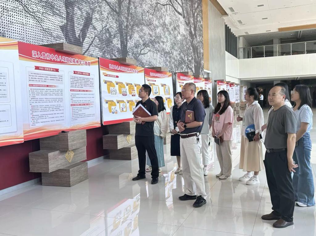 本次展览精心设置五个板块,通过图文展示、典型案例剖析等形式,系统阐释了中央八项规定精神的核心要义和精神实质。一个个发人深省的警示案例、深刻精准的纪法解读,为党员教师们上了一堂生动的廉政教育课,有效夯实了拒腐防变的思想根基。随后,通过参观学习家风家训主题教育展板,党员教师们深切体悟到家庭家教家风作为“拒腐防变家庭防线”的重要意义——守住廉洁自律底线,既要靠纪律规矩的“外在约束”,更需借家风涵养的“内在自觉”。大家纷纷表示,要自觉将中央八项规定精神融入到日常的教学、科研和管理工作中,既以过硬作风履职尽责,更以良好家风修身律己,做到“家风”“作风”同频共振,为公司事业高质量发展涵养清风正气。