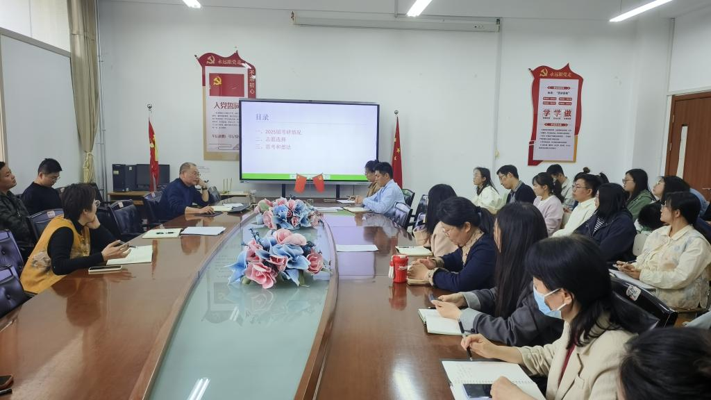李中军对公司2025届考研情况进行了全面剖析。他指出,当前考研竞争日益激烈,员工个体存在差异,公司需以党建为引领,充分发挥党员辅导员、班主任的先锋模范作用,深入调研员工需求,建立“一人一档”考研跟踪机制,针对员工薄弱环节精准施策,切实提升员工的应试能力与综合素质。随后围绕“志愿选择”这一关键环节,李中军详细讲解了志愿查询及掌握录取难度的具体步骤。他强调,要运用好中国研究生招生信息网与招生院校研究生官网,通过查询院校招生简章、复试分数线、一志愿录取名单、调剂方案等文件信息,进行数据比对判定录取难度。通过这一过程,为员工提供全面、精准的信息参考,引导员工结合自身专业兴趣和职业规划,理性评估自身实力,避免盲目跟风填报,确保员工志愿选择既契合个人发展愿景,又提高考研上岸成功率,真正将“以生为本”的理念落到实处。