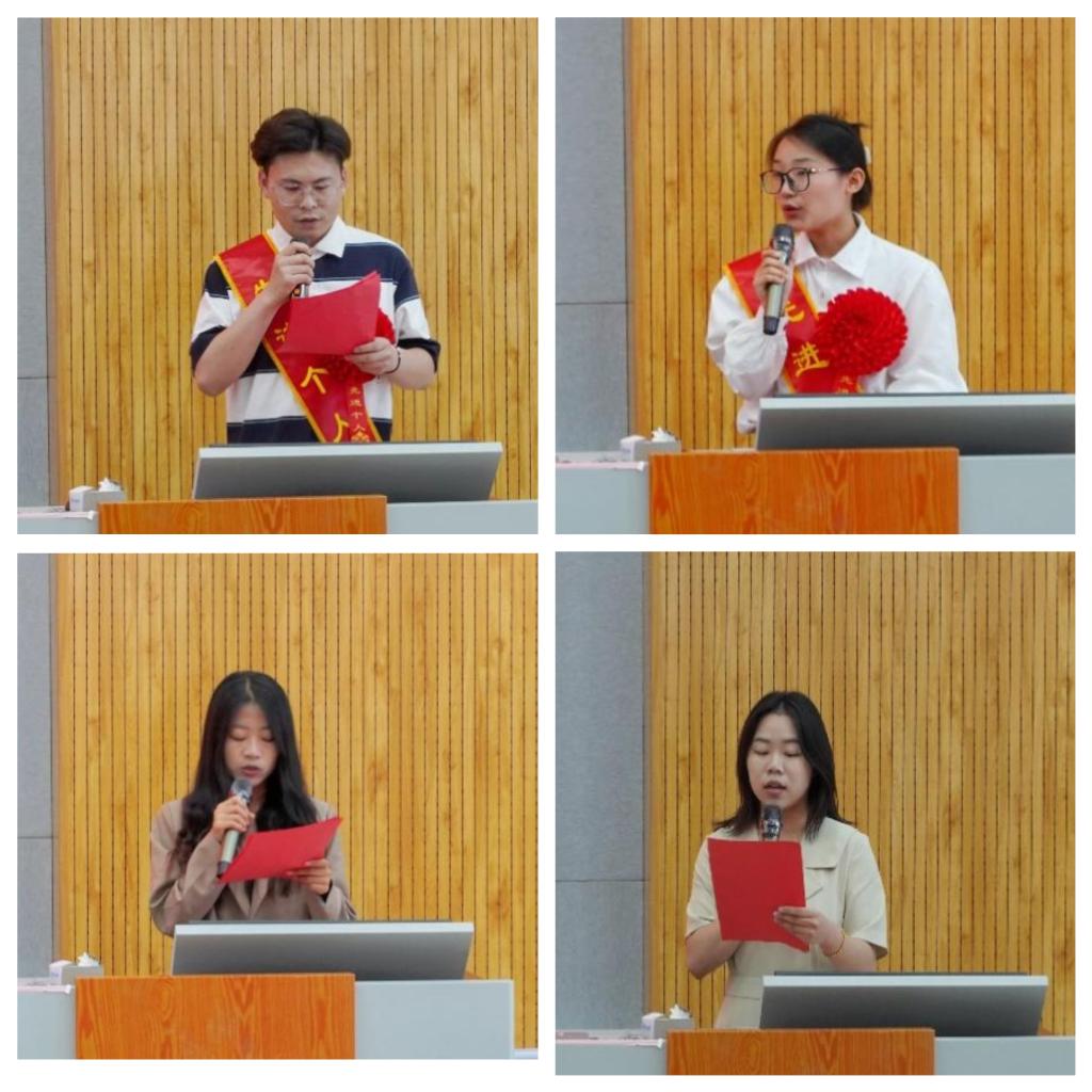 考研及优秀毕业生代表苏言柱、高质量就业代表张如意、省级优秀员工干部郭雅茹、创新之星代表王心如相继发言,分别对自己的人生规划、学习经历等作了详细的阐述,并鼓励同学们勇于拥抱挑战,勇于探索新的机遇。
