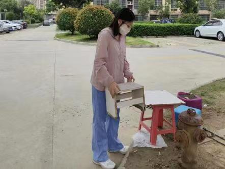 管瑶瑶22国际职业春本科1班员工,在青岛市即墨区佳源都市社区参加社会实践,主要负责打扫社区卫生。