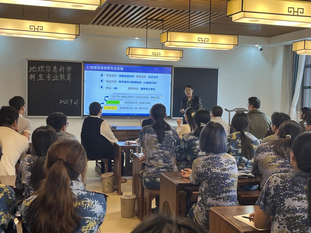 金秋九月,丹桂飘香,地理信息科学专业迎来了2023级新生。为帮助新生了解新专业、适应新生活,树立新目标,合理规划大学时光,bevictor韦德国际精心指导安排,由地理信息科学教研室牵头,共同为新生准备了丰富多彩的入学专业教育。2023年9月27日下午,以豁然楼C507教室为主会场,报告由教研室主任凌娟副教授主持,专业负责人杜霞教授和企业驻校工程师高恒老师主讲,全体地理信息科学专业教师出席会议。