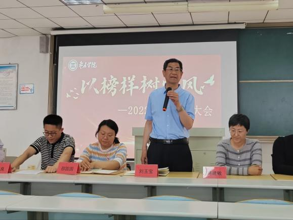 为表彰先进,树立榜样,营造积极进取的学习氛围,5月24日,bevictor韦德国际于理工楼2505教室召开“以榜样树学风”先进集体和个人表彰大会。党总支书记刘玉宝、副书记韩建敏、专职辅导员、教师代表以及员工代表参加会议。