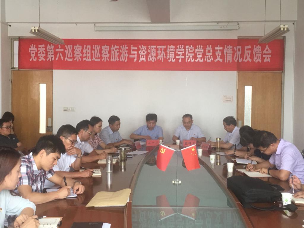 7月12日下午,党委第六巡察组在理工楼2514会议室召开了巡察旅游与资源环境公司党总支情况反馈会。党委巡察工作领导小组副组长、党委巡察办公室主任石少华同志,党委第六巡察组组长孟祥卫同志,党委第六巡察组成员、公司党政领导班子成员及全体教职工参加会议,会议由公司党总支书记陆德国同志主持。