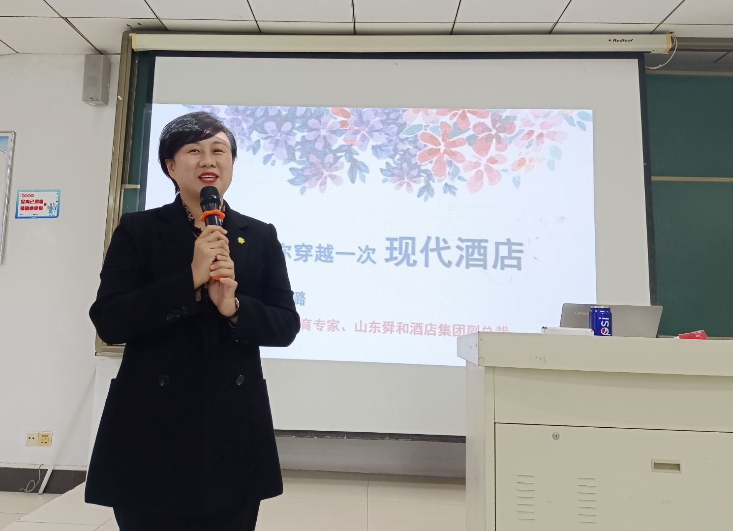 4月10日,bevictor韦德国际邀请山东省旅游行业教育专家、舜和酒店集团副总裁白璐女士作题为《走,带你穿越一次现代酒店》的报告。旅游管理专业负责人孙倩蓉博士主持报告会,2022、2023旅游管理、酒店管理专业全体员工聆听了此次报告。