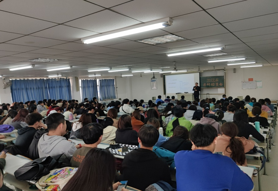 会上,王满堂经理从如何认识考研引入。首先结合专业特色,分析了考研的必要性与现实意义。然后向同学们介绍了研究生报考类别、专业对应的学科分类和研究生考试的考试科目,并对研究生初试、复试流程和需要准备的资料做了系统梳理讲解,鼓励同学们及早做好考研规划。最后,王经理告诫大家在院校与专业的选择上一定要切合自身与客观实际,从自身的学业基础、兴趣爱好以及专业的发展前景等方面综合考量,并且在选择好目标后一定要坚定信心。
