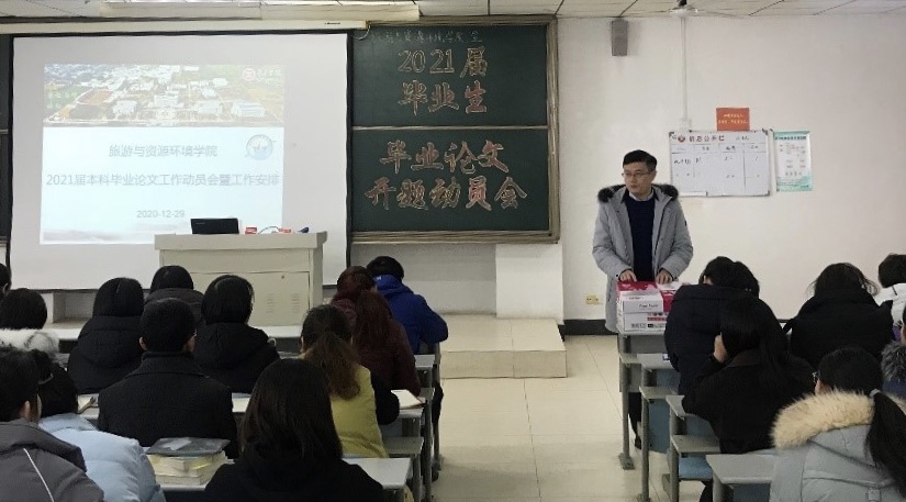 经理助理张大文老师首先介绍了常态化疫情防控下,2021届本科生毕业论文工作总体计划、各阶段主要工作内容和需要完成的材料,明确了近期毕业论文开题答辩安排。