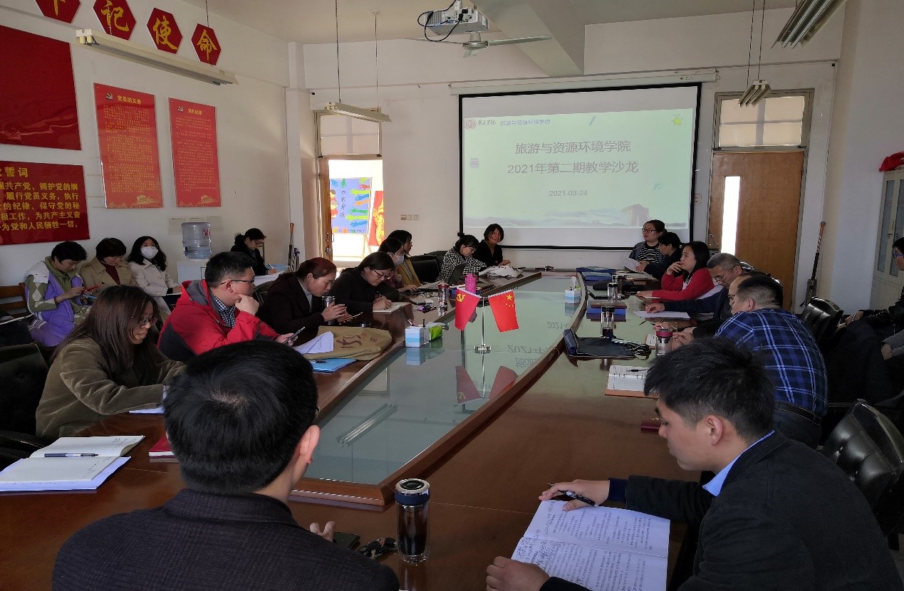 地理信息科学教研室杜霞老师做了题为《“一中心-两驱动-三目标-四融合”混合教学模式创新实践》的报告;地理科学教研室彭文彬博士做了题为《高校核心课程“世界地理”教学中融入“思政元素”的思考》的报告。