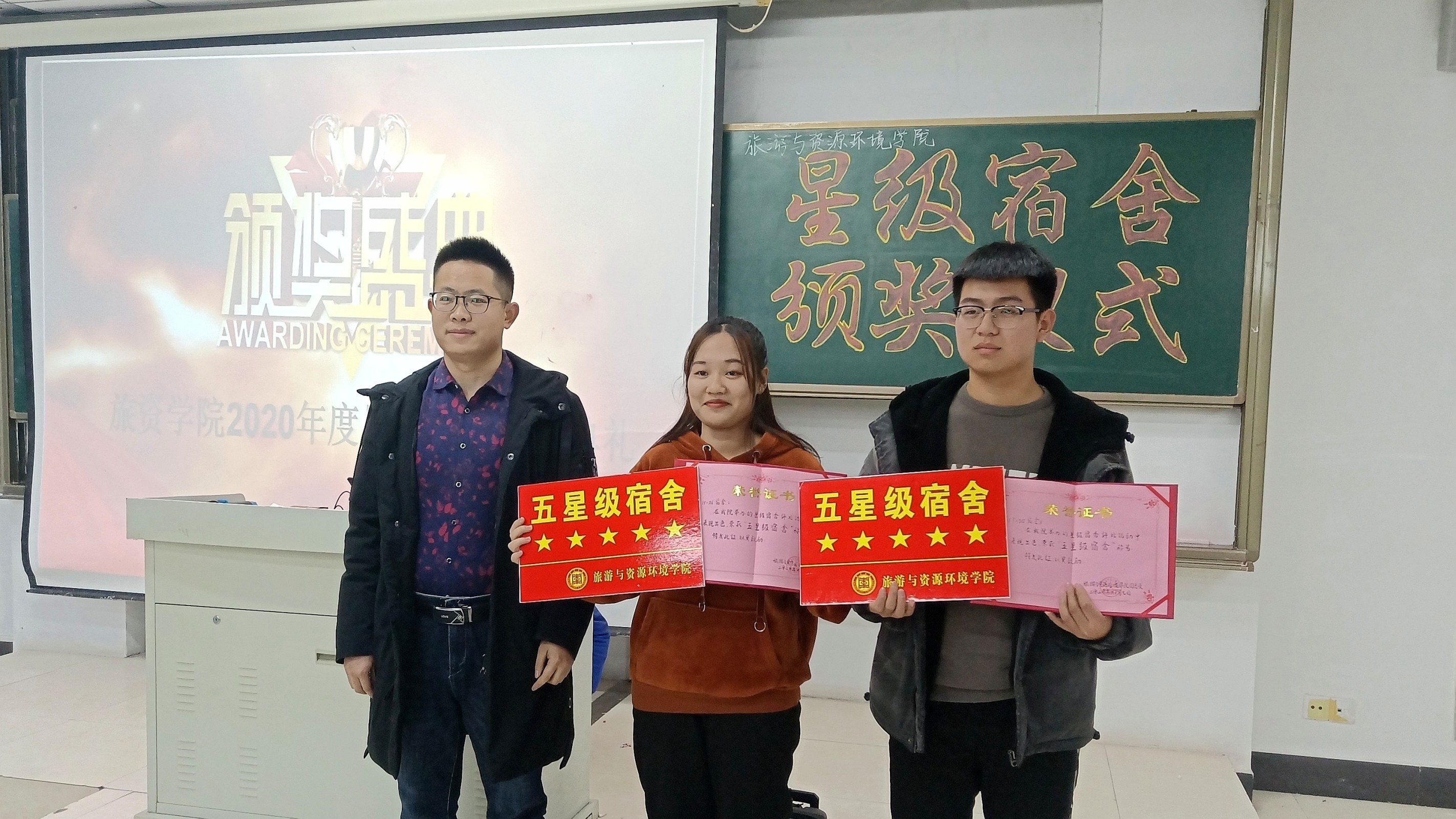 经过激烈角逐,共评选出五星级宿舍、四星级宿舍各2个、三星级宿舍4个、优秀宿舍2个、宿舍文化优秀幻灯片4个、宿舍安全优秀视频4个。表彰大会上,宿管部对获奖宿舍文化幻灯片和宿舍安全优秀短片进行了展播。最后,范老师对星级文明宿舍建设提出要求:一要在思想上重视宿舍环境问题,改变轻视宿舍的惯性思维;二要发挥模范带头作用,党员宿舍及星级文明宿舍要做好标杆;三是检查考核措施要跟上,要严格公正地开展每一项宿舍评比工作。
