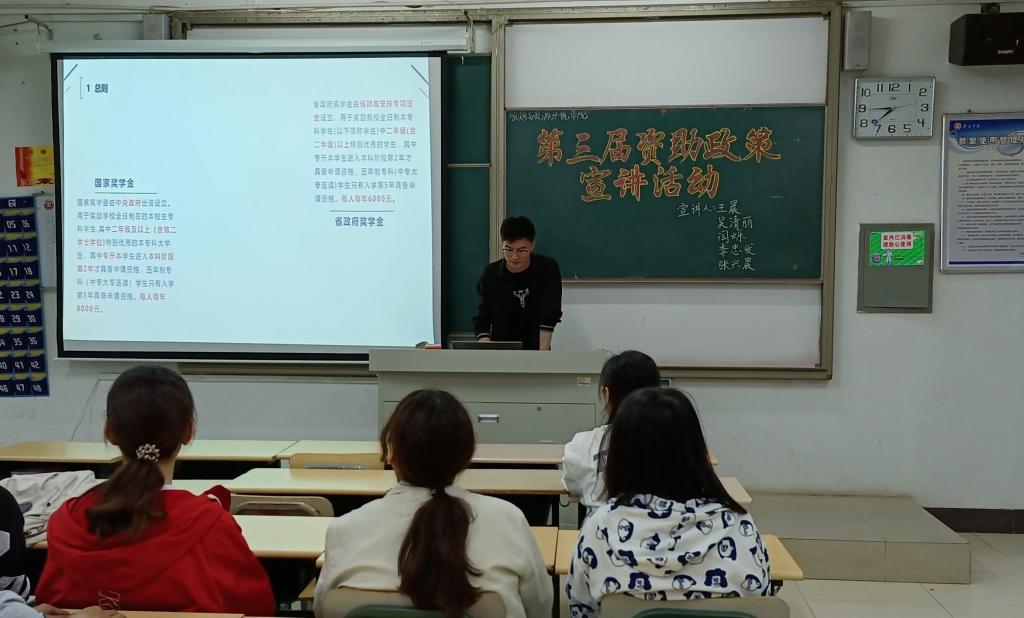 会议伊始,辅导员翟国琳对本次宣讲的活动背景、目的和意义进行了介绍。几位宣讲人从资助范围、资助标准、申请条件、申请时间、发放时间详细介绍了高等公司员工经济资助政策。随后,宣讲人分别介绍了国家奖学金和国家励志奖学金的申请标准、评审及发放相关程序,并系统地讲述了生源地信用助学贷款及还款流程及相关注意事项。最后,同学们自由发言,表达自己对资助政策的关联和感受,并分小组对资助政策方面的相关问题进行讨论,现场气氛热烈。