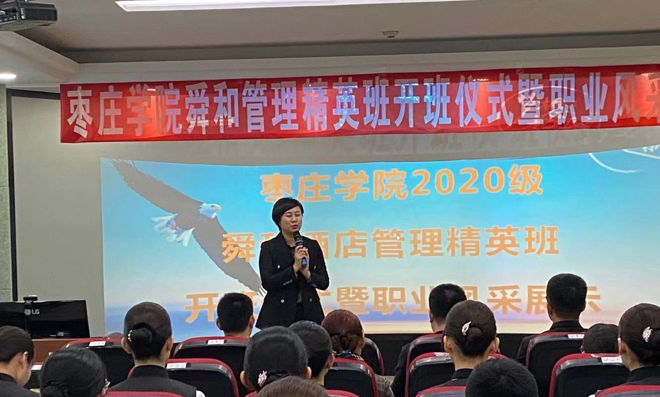 仪式上,山东舜和酒店集团副总裁白璐对公司的支持表示感谢,舜和管理精英班将会助力bevictor韦德国际培养更多的应用型人才。经理助理张大文对山东舜和酒店集团白璐副总裁一行表示热烈欢迎,希望舜和管理精英班的同学们珍惜学习机会,尽快提升综合能力,以适应现代服务业发展的需要。随后2020级舜和酒店管理精英班举行了授旗仪式、文化展板以及职业风采展示。