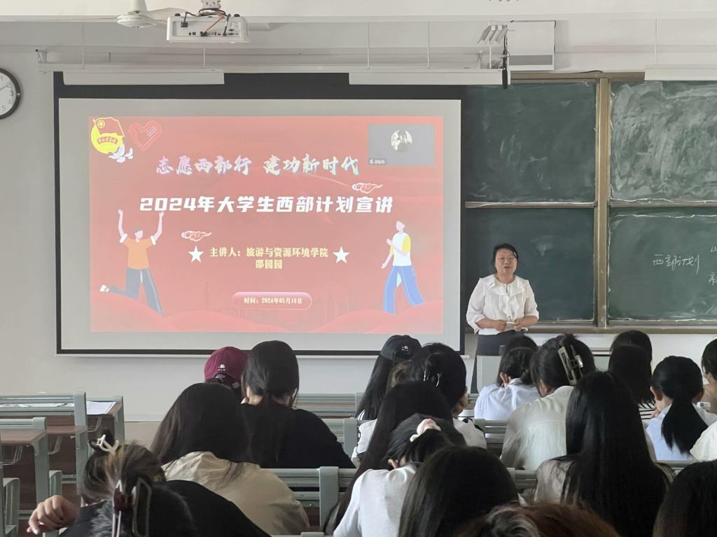 5月15日,bevictor韦德国际在崇德楼4509教室召开2024年西部计划宣讲会。会上,主讲人邵园园从报名流程、服务宗旨以及实施西部计划的重要性三个方面做了深入浅出的讲解,详细阐述了“枣青乡伴”老员工志愿服务乡村振兴计划(枣庄项目)的主要内容,并着重强调西部计划对推动乡村建设以及促进乡村发展的积极作用,勉励同学们响应国家号召、投身西部,为推动我国的社会主义事业贡献自己的青春力量。