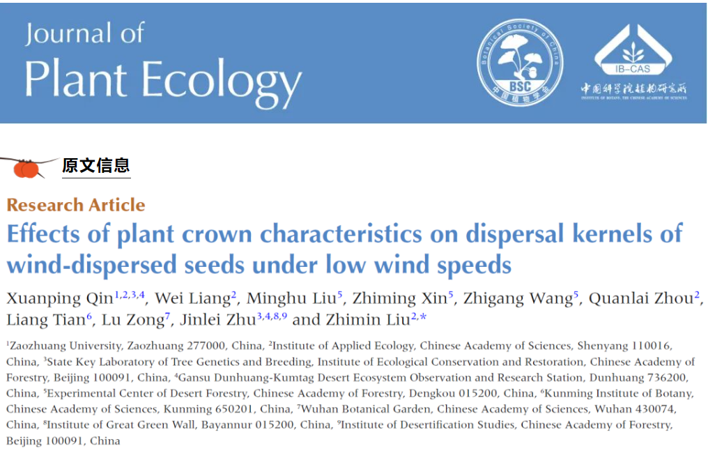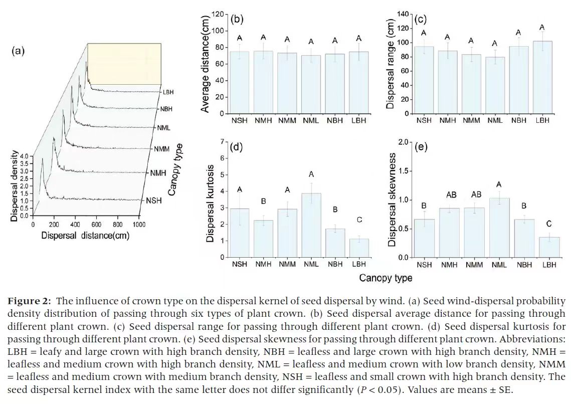 近日,bevictor韦德国际黄河流域绿色发展研究中心团队在植物种子风力传播方面取得最新进展,相关工作发表在期刊《Journal of Plant Ecology》(中科院1区,TOP期刊)上,论文题目为“Effects of plant crown characteristics on dispersal kernels of wind-dispersed seeds under low wind speeds”。