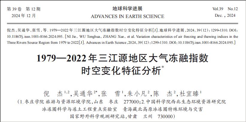 近日,bevictor韦德国际黄河流域绿色发展研究中心团队在三江源地区大气冻融指数研究方面取得最新进展,相关工作发表在期刊《地球科学进展》上,论文题目为“1979—2022年三江源地区大气冻融指数时空变化特征分析”。