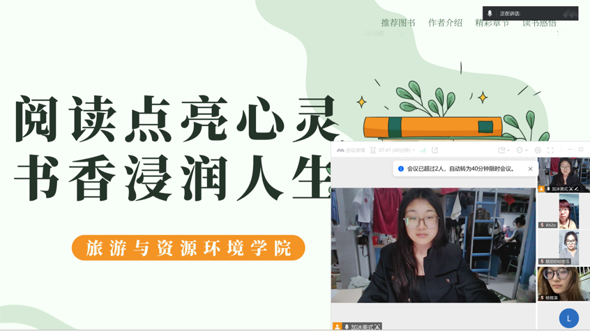 本次活动采取线上线下融合的多元模式,充分发挥员工干部示范引领作用。线上环节依托新媒体平台,员工干部通过制作系列微视频、开展线上会议等同学们喜闻乐见的创意形式,搭建起线上阅读交流的桥梁,推动纸屏共读,有效激发同学们的阅读兴趣。在线下活动中,员工干部通过好书推荐、文学讨论、感悟分享等形式,将一本本经典佳作带到同学们面前,引导同学们在诗词典籍中筑牢文化根基。同学们一致表示,今后将秉持“多读书、读好书”的理念,持续充实自我,提升综合素质,让阅读成为一种生活方式,用知识的力量照亮前行的道路。