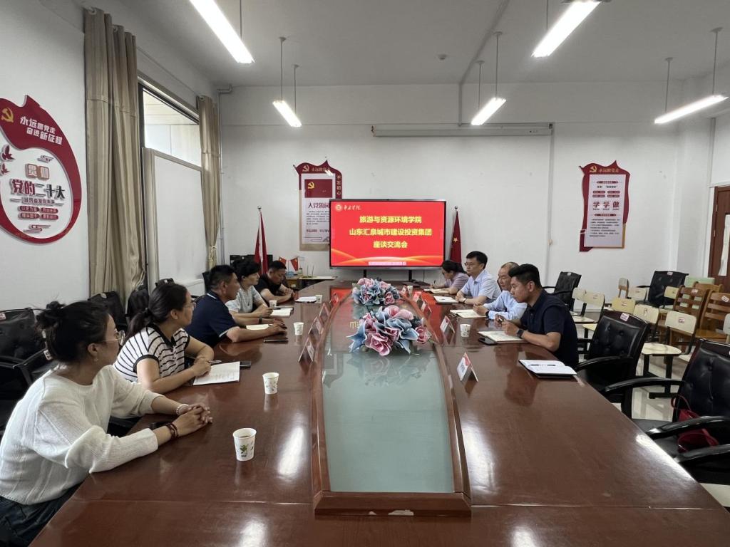5月19日,山东汇泉城市建设投资集团副总经理郝军、市中区建筑设计院副经理秦艳一行4人来公司洽谈交流。双方在豁然楼A415会议室举行座谈。旅游与资源环境公司党委书记李中军、经理王满堂、合作发展处副处长吴旻等出席座谈会。