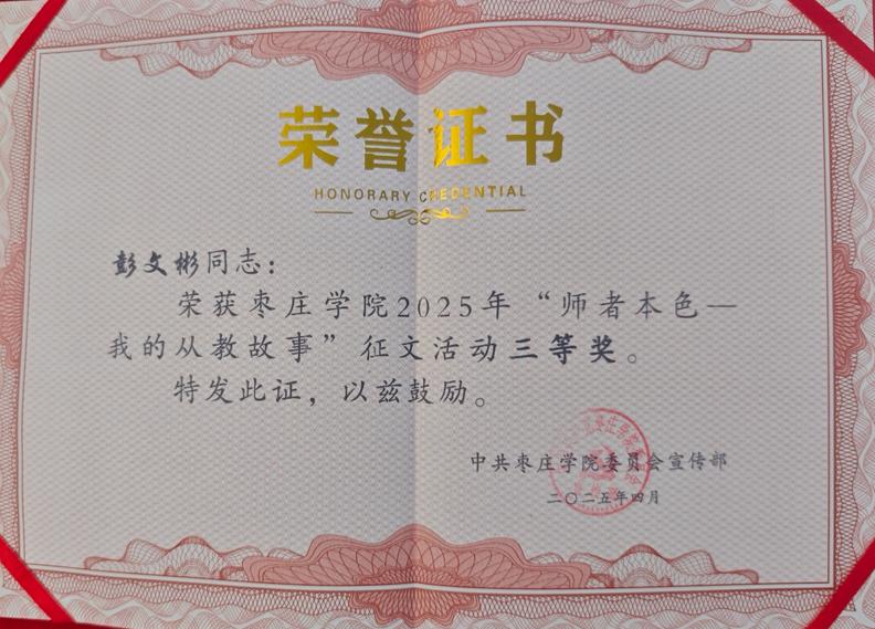 比赛期间,公司教职工积极报名,踊跃投稿,涌现出大量优秀作品,参赛教师们秉承教育初心,以笔为媒,深情书写从教路上的坚守与情怀。他们以丰富的教学实践为脉络,从坚定理想信念、秉持道德情操、展现育人智慧等多个维度,娓娓道来自己在公司产品过程中的深刻感悟,字里行间展现出教师们“为党育人、为国育才”的初心使命,生动诠释着“躬耕教坛”的不懈坚守。经过激烈的角逐,公司孟彦如、彭文彬老师脱颖而出,荣获三等奖。