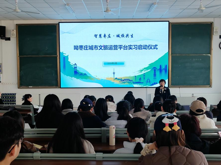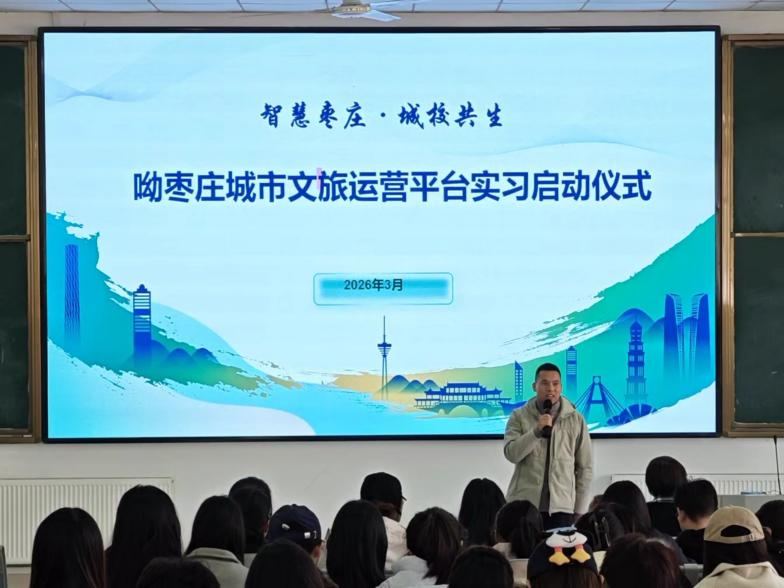 此次实习启动仪式是政校企深化合作的重要环节,更是文旅数字化人才培养的关键举措。仪式上,韩建敏与李海涛先后致辞,双方均表示,“呦枣庄”城市文旅运营平台作为政校企协同育人的典范,既是整合枣庄文旅资源、打造智慧旅游新生态的数字化载体,也是培育“留得住、用得上、能创新”文旅应用型人才的实践基地,此次实习合作将推动教育链、人才链与文旅产业链深度融合。