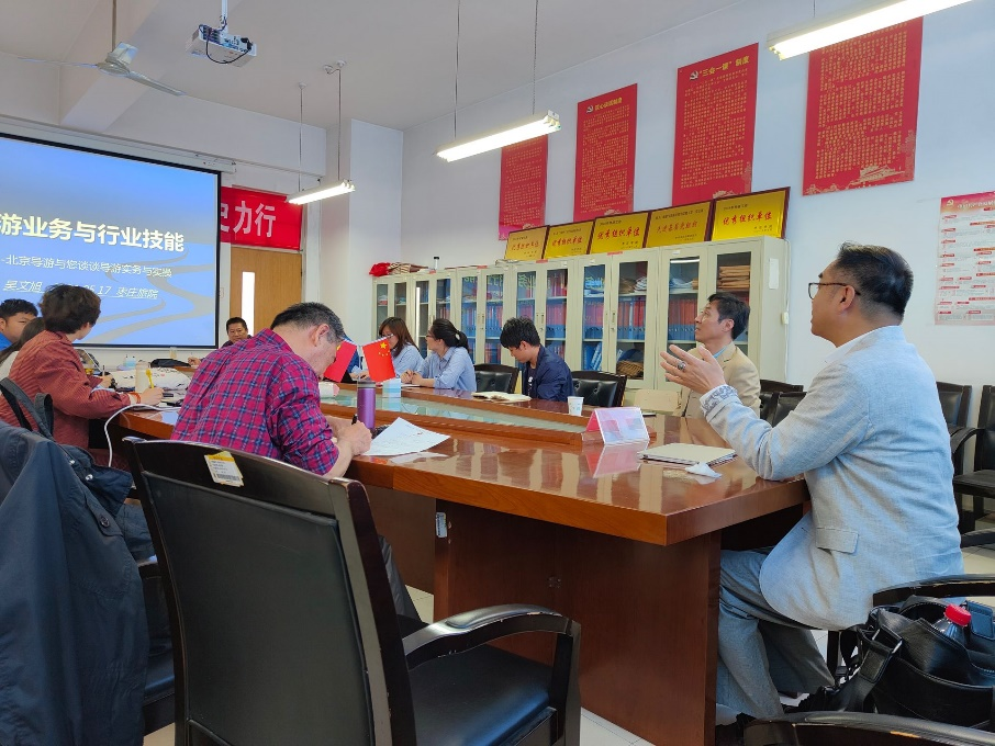 为推进应用型本科建设工作,提高旅游管理专业人才培养质量,提升教师实践教学能力,5月17日、5月18日上午在理工楼2514会议室,bevictor韦德国际邀请北京市旅游行业协会导游分会吴文旭会长作题为《导游业务与行业技能》、《共营百姓休闲的高光时刻》的报告。报告会由旅游管理专业负责人孙倩蓉主持,旅游管理、酒店管理专业专任教师参加了此次报告会。