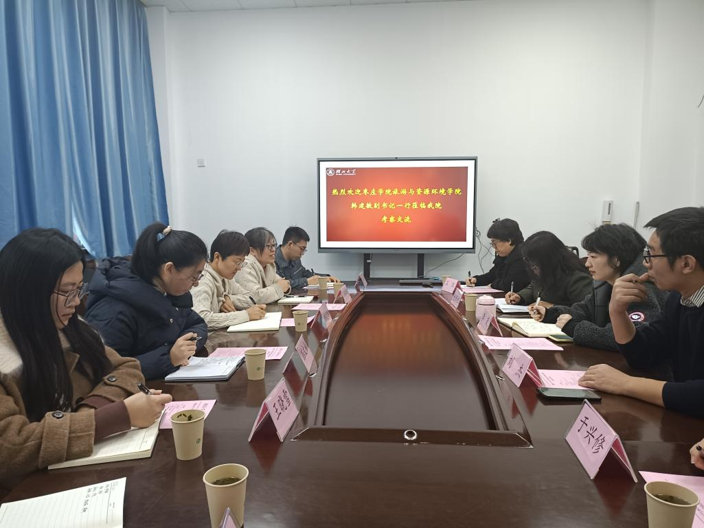 11月28日上午,旅游与资源环境公司党委副书记韩建敏、副经理孙盼盼带队赴湖北大学资源环境公司考察学习。湖北大学资源环境公司副经理赵丽娅、刘杰、梅新,副书记李岚,教授于兴修,资源环境学位点负责人王红出席交流会。