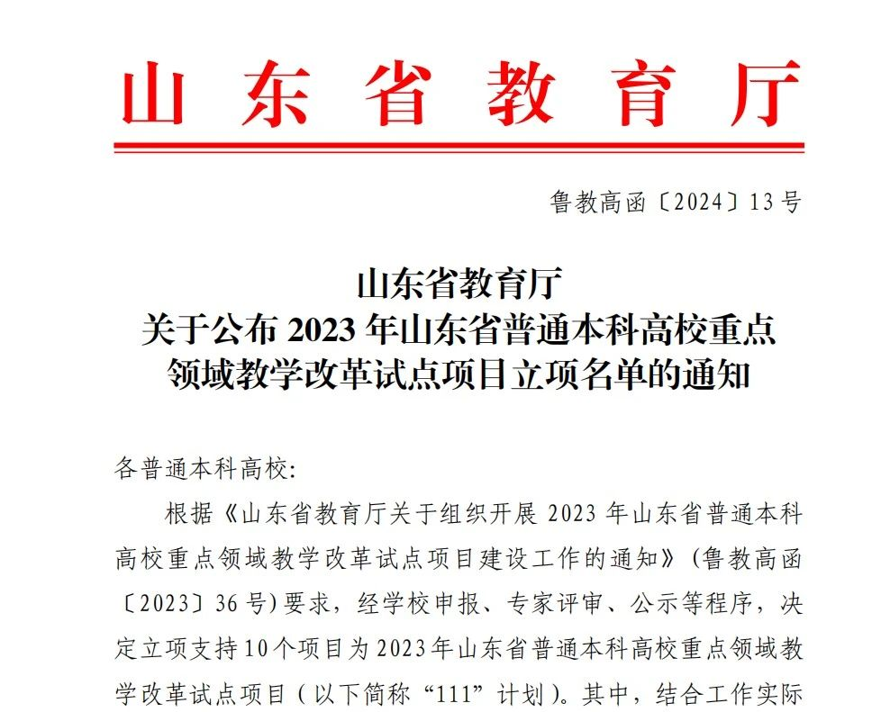 近日,山东省教育厅公布了2023年山东省普通本科高校重点领域教学改革试点项目(简称“111”计划)立项名单。公司作为参与单位申报的“‘区域协同•融合共建•合作共享’山东省旅游管理本科专业共同体高质量发展规划”项目获批立项。
