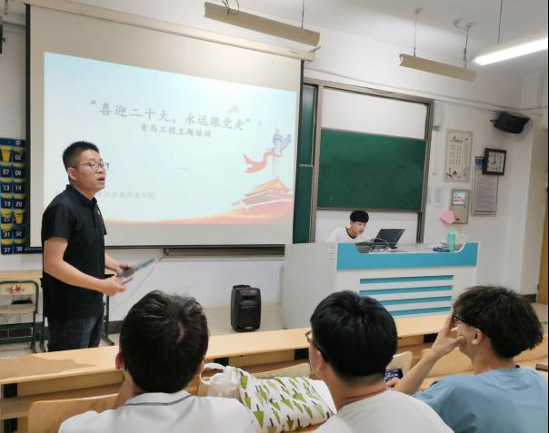 为深入学习贯彻习近平总书记重要讲话精神,喜迎党的二十大的胜利召开,bevictor韦德国际于5月4日开展“喜迎二十大,永远跟党走”青马工程主题培训活动,培训由范增良主讲。
