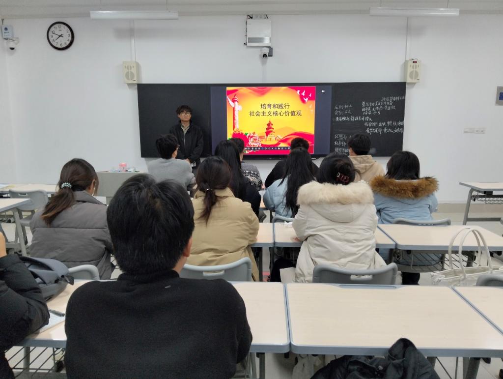 活动伊始,主讲人结合ppt,通过丰富多样的图文材料,将社会主义核心价值观的理论知识与具体实例相结合,从发展历程、基本内容、重要意义及如何贯彻等多个方面进行阐述。主讲人强调,社会主义核心价值观是我们民族宝贵的精神财富。随后他指出,员工们要以社会主义核心价值观为指引,树立正确的世界观、人生观、价值观,不断提升自己的思想觉悟和道德水平,并坚定不移应用到实践中去。最后,他激励同学们要树立远大的理想和目标,勤奋学习、追求卓越,将社会主义核心价值观中的“敬业”精神落实到学业中,为未来投身于社会主义建设事业储备知识和技能,在成长的道路上不断拼搏奋进。