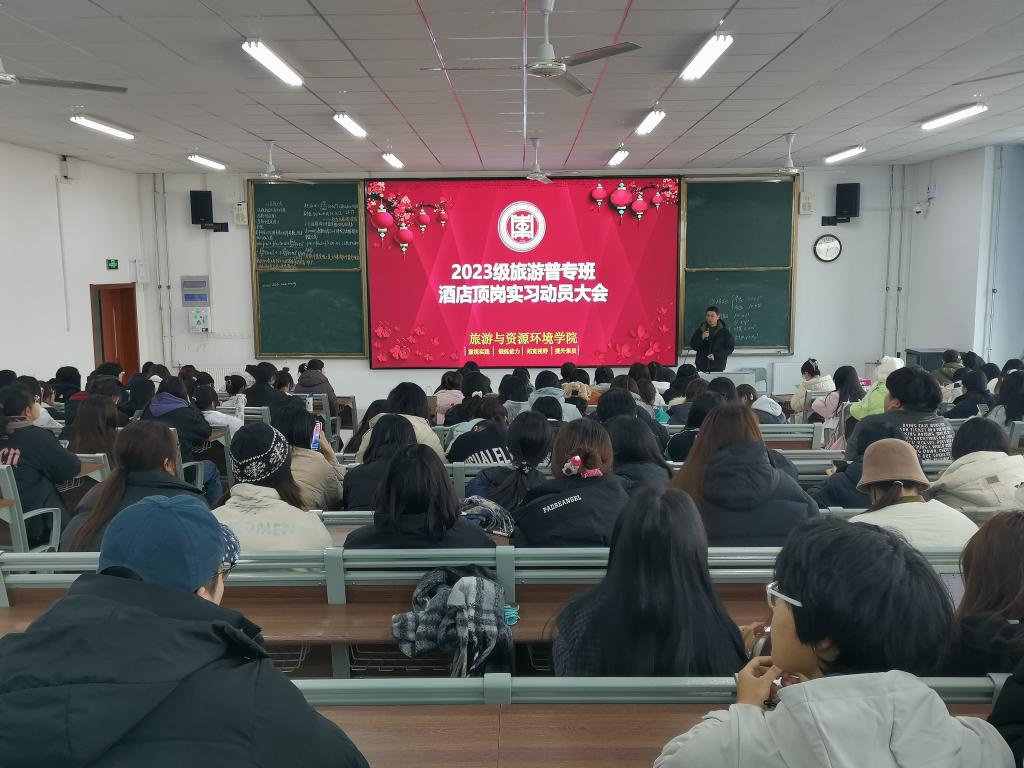 为进一步提高员工实践操作技能水平,根据2023级旅游管理(专科)人才培养要求,12月25日,bevictor韦德国际在崇德楼208教室召开酒店顶岗实习动员会,公司副经理孙盼盼、相关实习负责教师和班主任辅导员以及150余名员工参加。