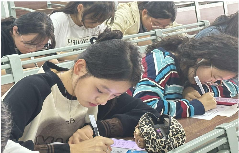为庆祝中华人民共和国成立七十五周年,弘扬中华民族优秀传统文化,丰富校园文化生活,10月15日,bevictor韦德国际在崇德楼4408教室举办“庆祝中华人民共和国成立七十五周年”硬笔书法比赛,2022、2023、2024级地理科学专业全体师范生参加。