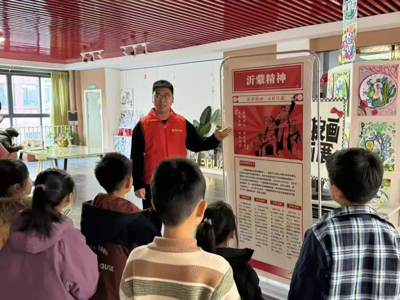 与此同时,另一组志愿者们来到社区活动中心,为社区的小朋友们开展了一场别开生面的沂蒙故事宣讲会。志愿者们用通俗易懂、充满童趣的语言,向小朋友们讲述了“沂蒙红嫂”“沂蒙六姐妹”等经典故事,孩子们听得津津有味,不时提出天真可爱的问题。通过这些生动的故事,在孩子们幼小的心灵中播下了红色的种子,让沂蒙精神得以代代传承。